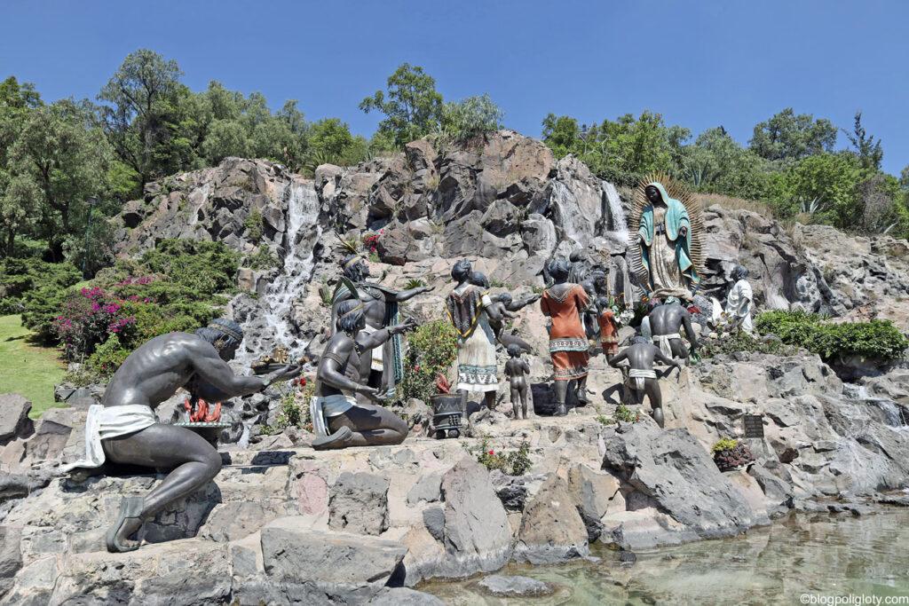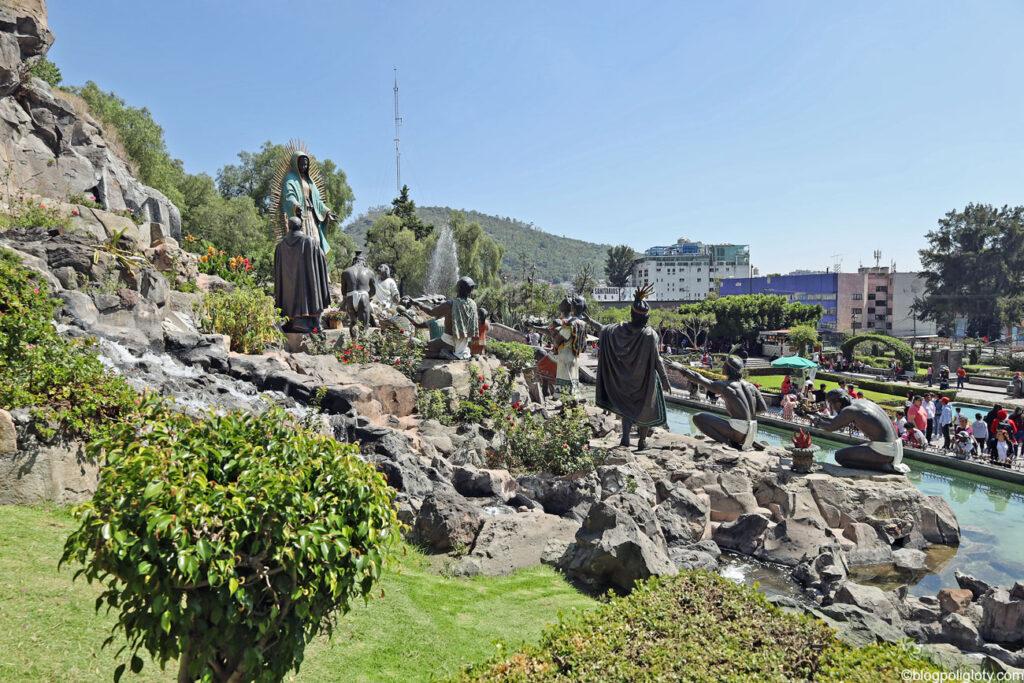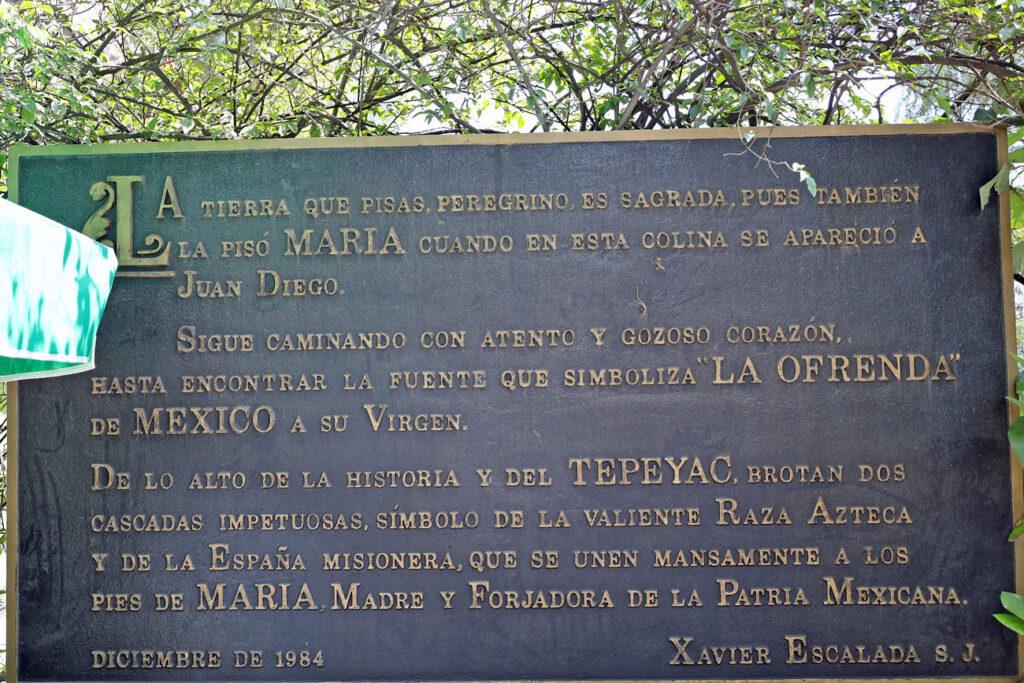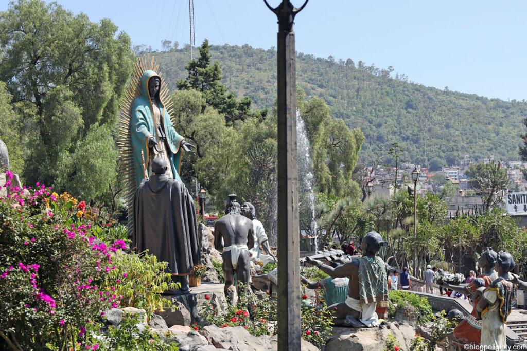 Schodząc w dół od Wzgórza Tepeyac, wchodzimy do Ogrodu Tepeyac, przepięknego miejsca pełnego kwiatów, drzew i zieleni. To przestrzeń, w której pielgrzymi mogą poczuć bliskość natury i zatrzymać się na chwilę modlitwy i kontemplacji. W samym sercu ogrodu znajduje się monumentalna rzeźba „Ofiarowanie”, która składa hołd Matce Bożej z Guadalupe i jej roli w historii Meksyku.