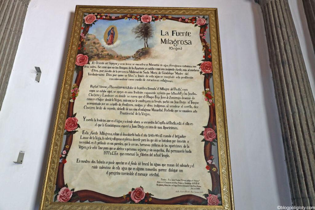 Pierwszą malutką kapliczkę w tym miejscu postawiono dopiero w 1666 roku. Jednak dopiero w 1749 roku, niemal 100 lat później, wybudowano większy kościół, który stał się jednym z kluczowych punktów pielgrzymkowych. Wnętrze kaplicy zdobią obrazy autorstwa Fernando Leala, jednego z współtwórców meksykańskiego muralizmu, przedstawiające najważniejsze momenty z historii objawień Matki Bożej z Guadalupe.