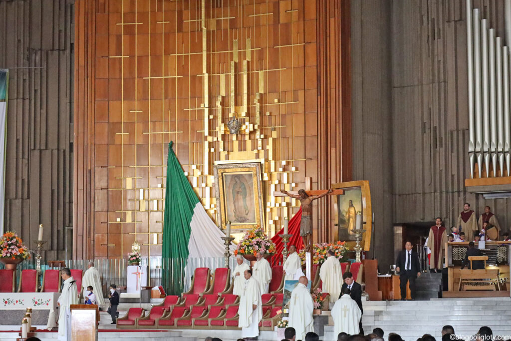 Na centralnym pilastrze znajduje się cudowny Obraz Najświętszej Maryi Panny z Guadalupe. Dzięki okrągłemu kształtowi Bazyliki, obraz Matki Bożej może być widziany z każdego punktu kościoła. Po lewej stronie obrazu wisi ponad 20 flag narodowych państw, które przyjęły Matkę Bożą z Guadalupe za swoją patronkę.