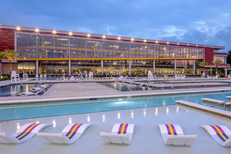 Recreation centre with outdoor pool © Louisiana State University Recreation Center