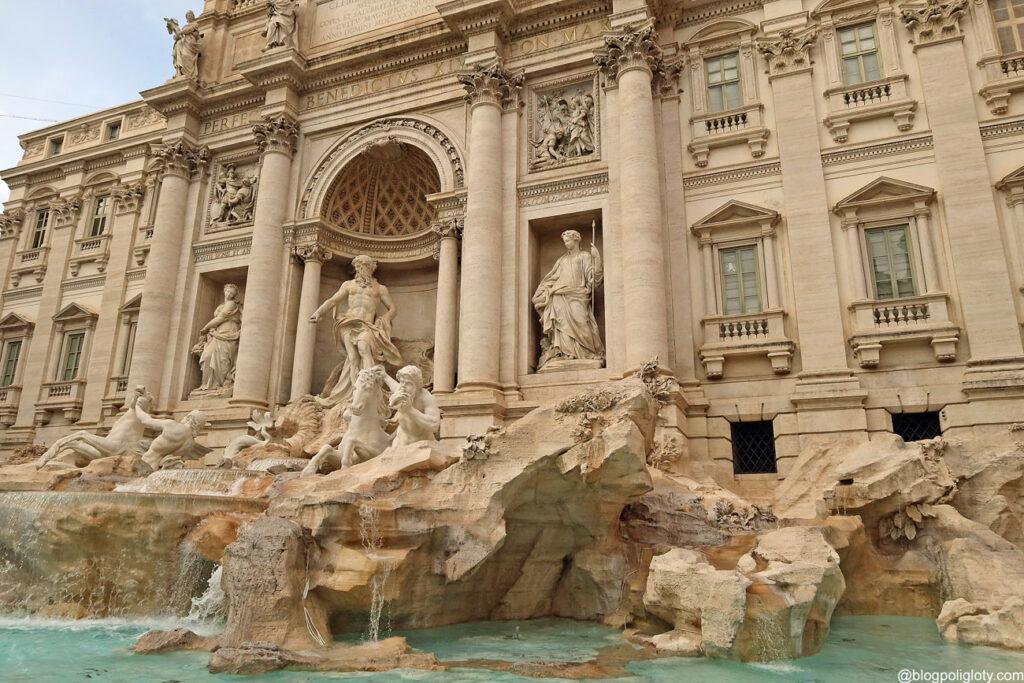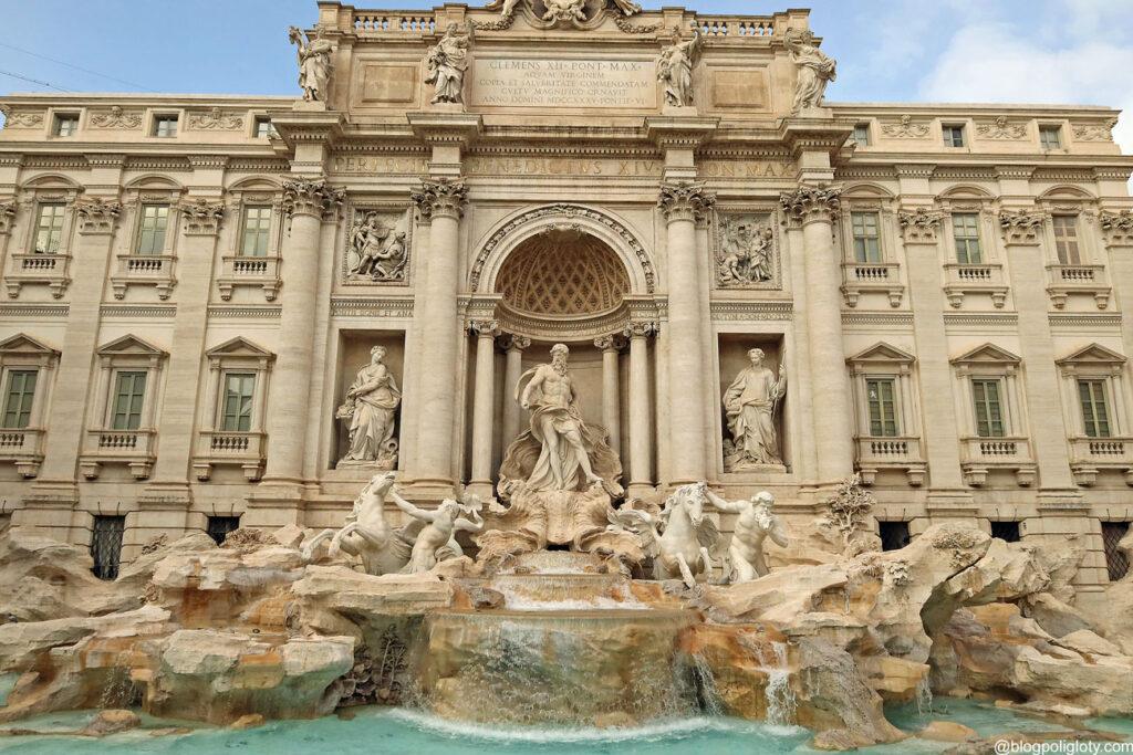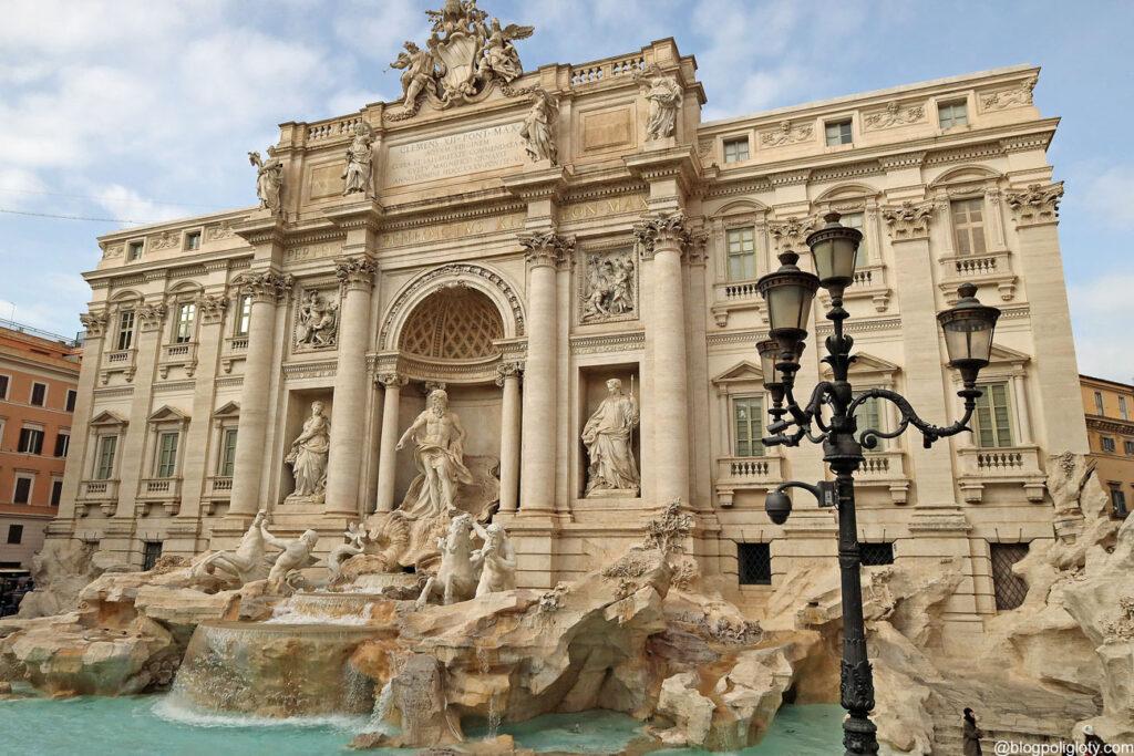 Fontanna Trevi jest największą ze wszystkich fontann Rzymu. Znajduje się w centrum miasta na Piazza Trevi i jest zdecydowanie najczęściej odwiedzaną fontanną Wiecznego Miasta. Ta ogromna konstrukcja zbudowana jest z trawertynu, marmuru, gipsu oraz metalu. Trawertyn był wysoko ceniony zarówno w czasach antycznych, jak i nowożytnych. Wykorzystano go m.in. jako budulec Bazyliki św. Piotra czy Koloseum. Forma tej barokowej fontanny przypomina fasadę budynku, ma 20,0 m szerokości i 26,0 m wysokości.