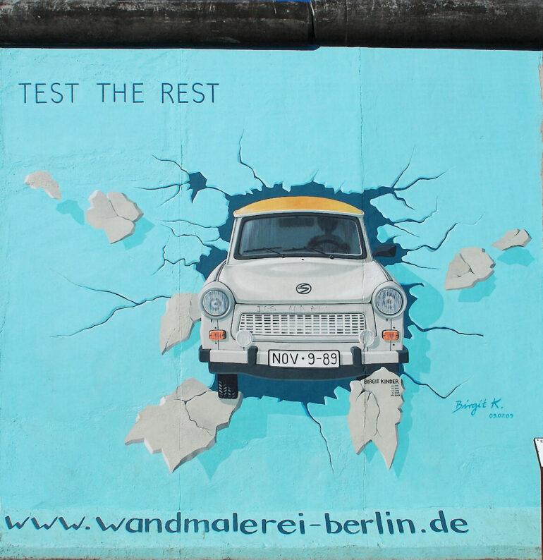 Foto: Mauerbild „Test the Rest“, East Side Gallery, Berlin, Autorin: Birgit Kinder