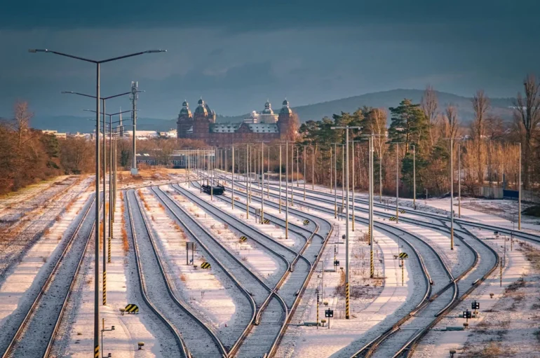 Railway tracks covered with snow