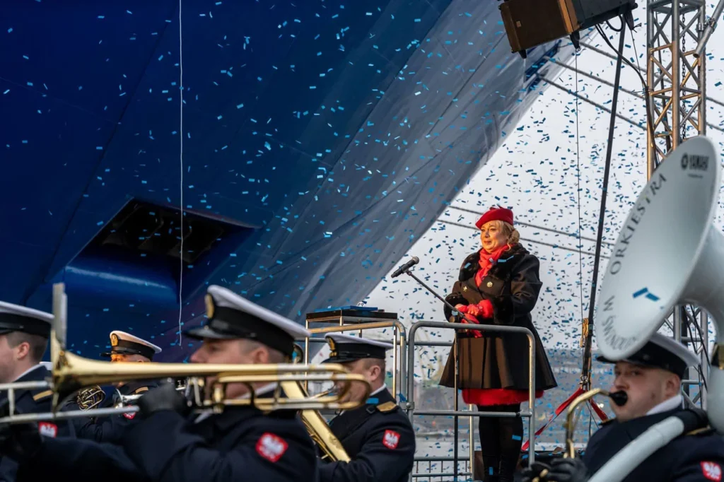 After the press conference, the symbolic moment of naming the vessel took place in a traditional ceremonial setting. The godmother of the Jantar Unity ferry was Miłosława Błaszyk-Zjawińska, Director of the Management Division at the Polish Steamship Company in Szczecin. In the evening, after the official part of the event had concluded, a multimedia light show was presented as a separate element of the celebration program.