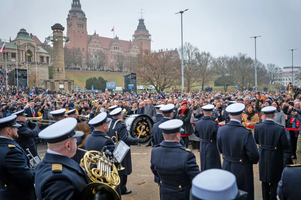 Representatives of the authorities, invited guests, inhabitants, and the Military Orchestra in Świnoujście © Szczecin Floating Garden