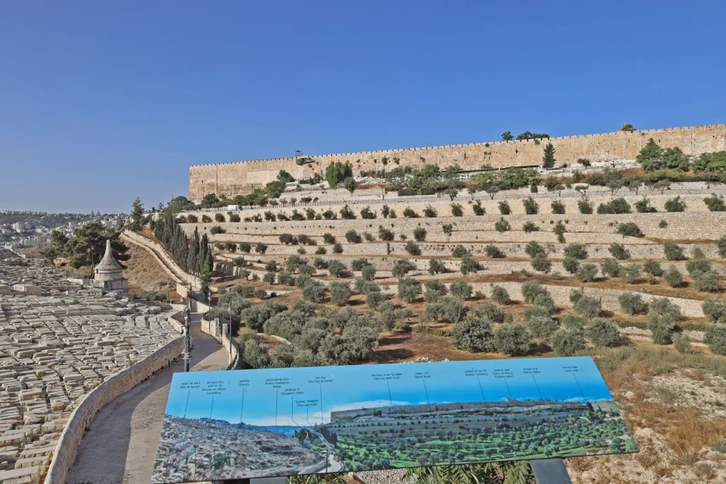 Old City Wall (East), the Last Path, the Tomb of Absalom and Mount of Olives Cemetery