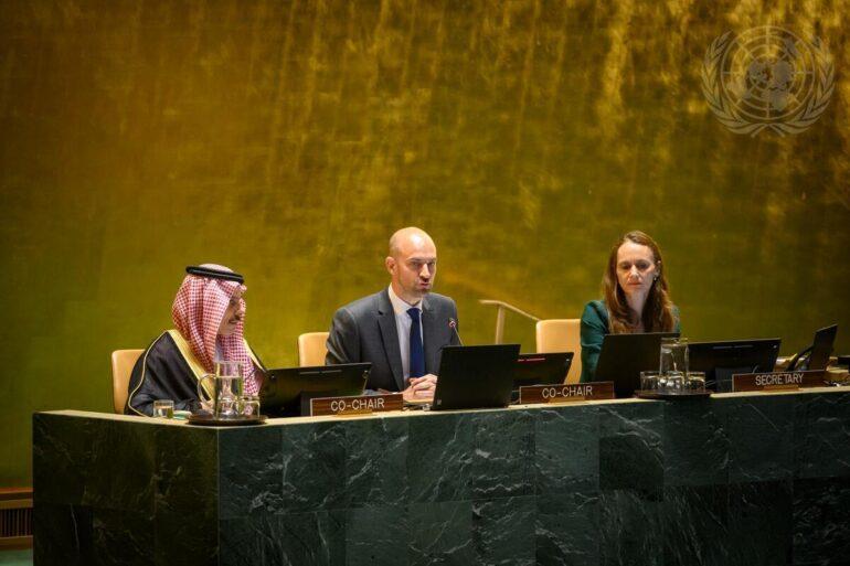 Photo: Foreign Ministers, Jean-Noël Barrot of France and Prince Faisal bin Farhan Al Saud of Saudi Arabia, the co-chairs of the conference. – Loey Felipe/UN News